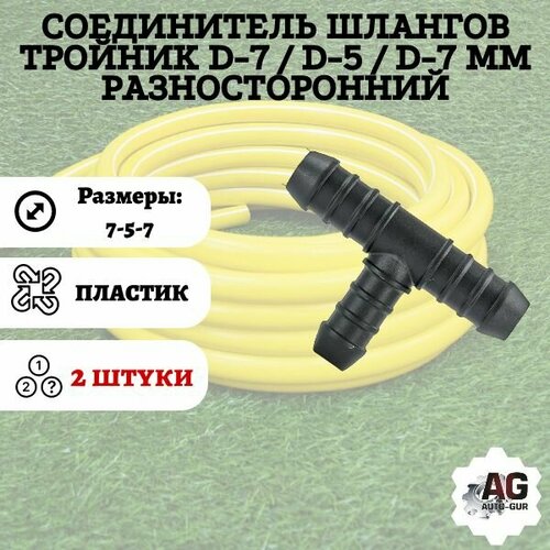 Соединитель шлангов Тройник D-7 / D-5 / D-7 мм разносторонний 2 штуки