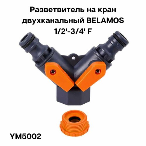 Разветвитель на кран двухканальный, соединитель садовый, распределитель шлангов для сада