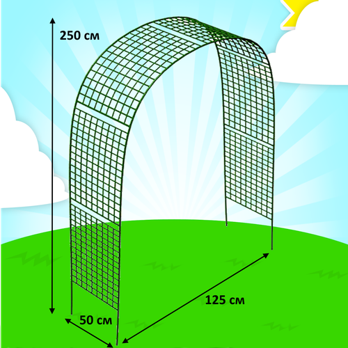 Арка сетка разборная металлическая 250х125х50 см d16 зеленая