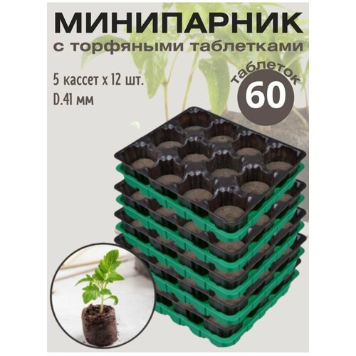 Комплект для рассады с торфяными таблетками d-41мм, набор кассета с поддоном для рассады на 12 ячеек
