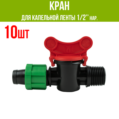 Кран 1/2" наружная резьба для капельной ленты (10 шт)
