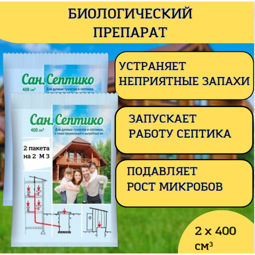 Препарат Сан. Септико для дачных туалетов, септиков, канализаций, выгребных ям, 2 шт