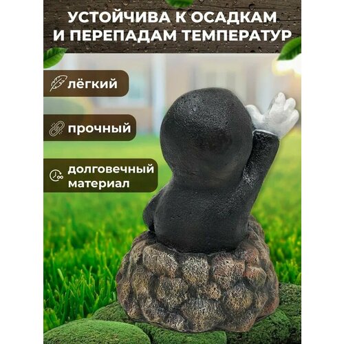 Фигурка сделана из качественного камня, из полистоуна, поэтому отличается долговечностью и устойчивостью к погодным условиям. С ней можно создать уникальный стиль вашего сада, дорожки на улице.