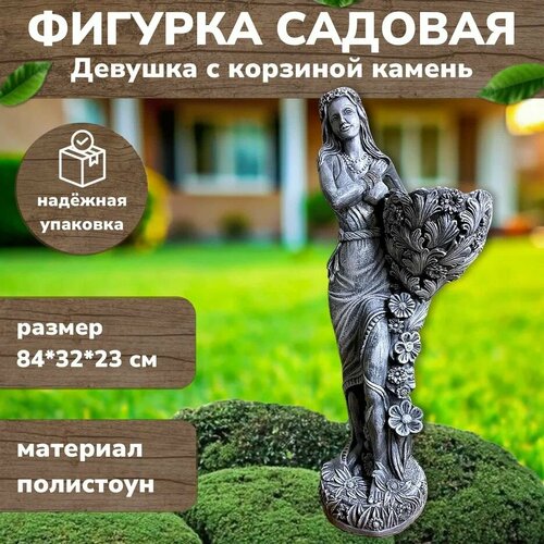 Садовая фигурка "Девушка с корзиной" камень декор для дачи, сада и огорода