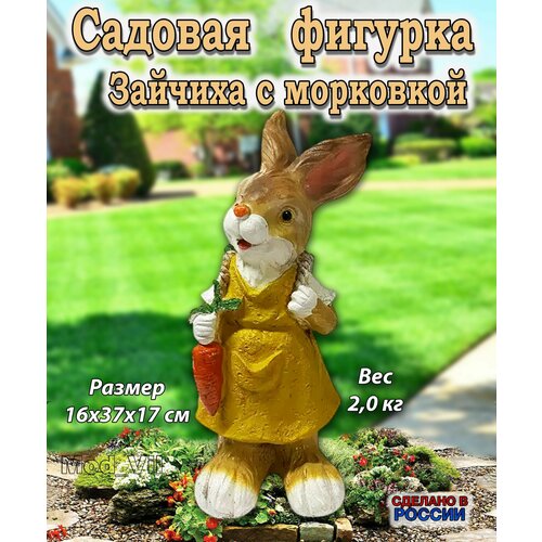 Садовая фигурка Зайчиха с морковкой, декор для дачи, сада и огорода