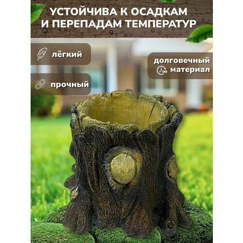 Большая садовая фигурка "Кашпо Пень с лягушкой" декор для дачи, сада и огорода