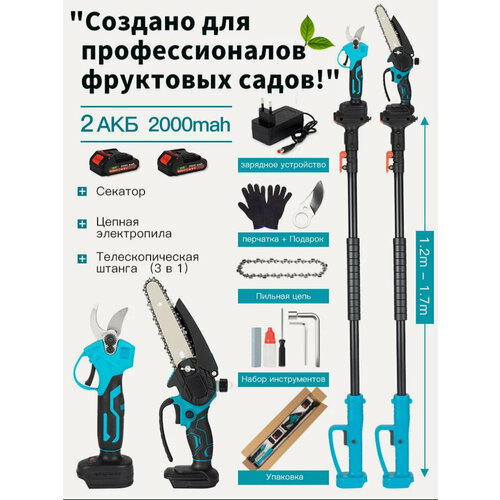 Набор садовый: секатор аккумуляторный аккумуляторная цепная пила, 2 аккумулятора в комплекте