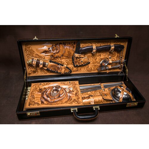 Шашлычный набор подарочный, набор для пикника, набор для шашлыка подарочный в кейсе "Арт Медведь"