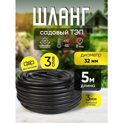 Шланг садовый поливочный морозостойкий ТЭП, резиновый армированный, (32 мм), 5 м