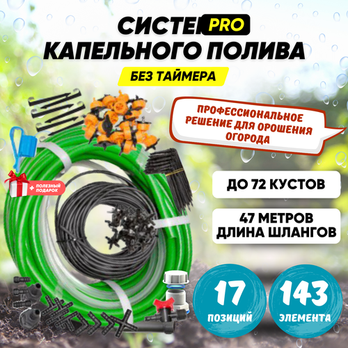 Капельный полив для теплицы PRO на 72 растения с шаровым кран-таймером Система автополива от емкости (бочки), водопровода для огорода, рассады, цветов