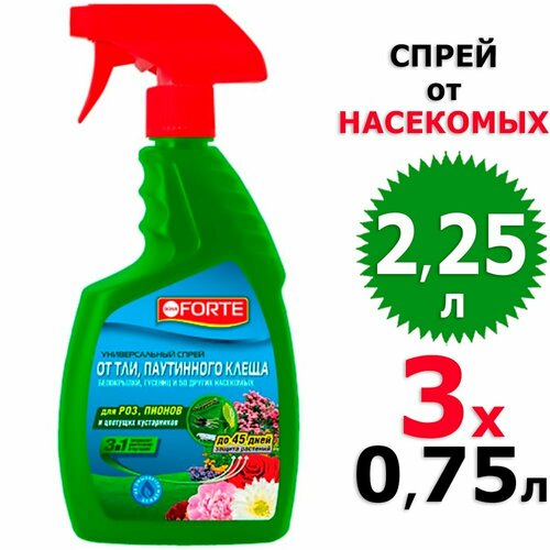 2,25 л Спрей от тли, паутиного клеща и других насекомых 3 фл х 0,75 л (всего 2,25 л), Бона форте / Bona Forte
