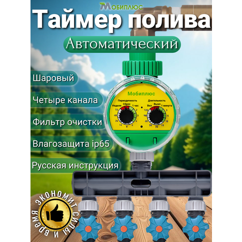 Таймер полива четырехканальный шаровый Мобиплюс для парников и теплиц