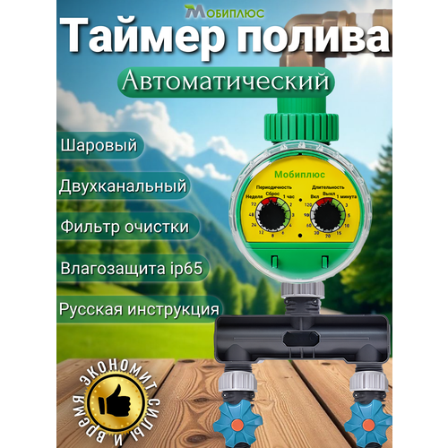 Таймер полива двухканальный шаровый Мобиплюс для парников и теплиц