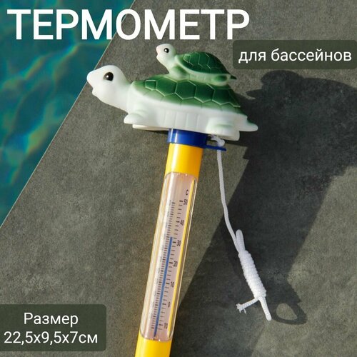 Термометр плавающий для бассейнов 22,5х9,5х7см, арт. Sun24047 зеленые черепахи