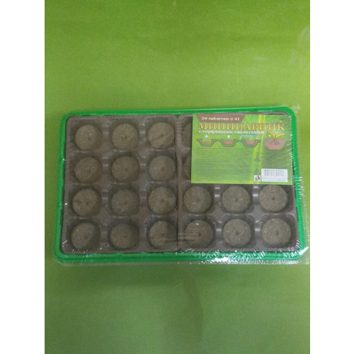 Парник-мини 41 мм, 24 ячейки, с поддоном, для рассады, с торфяными таблетками, 1упак.