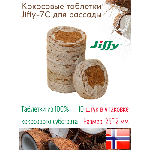 Таблетки торфяные/Кокосовые таблетки для выращивания рассады Jiffy-7C (ДЖИФФИ-7C) D-25 мм, кокосовые, 10 шт.