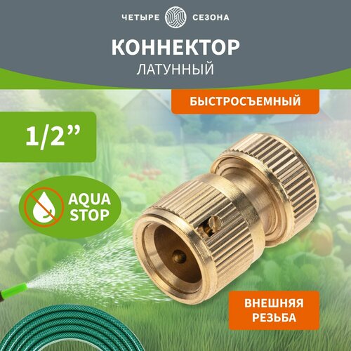 Коннектор для шланга штуцер латунный, быстросъемный, 1/2", с аквастопом четыре сезона