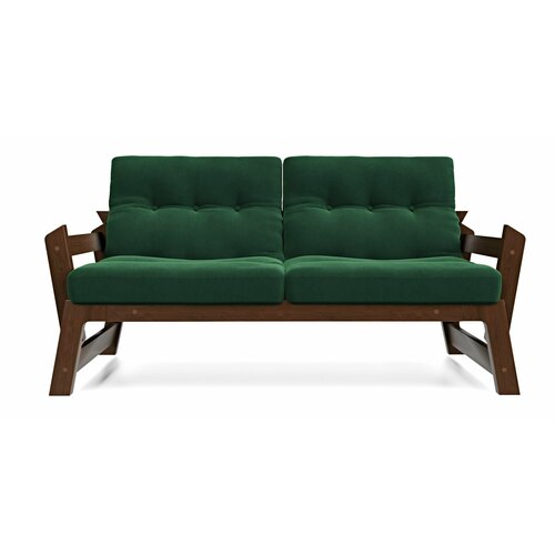Садовый диван Мод-С, изумрудный-орех, массив дерева, велюр, офисный, для кафе и бара, для дачи, для салона красоты, скандинавский лофт