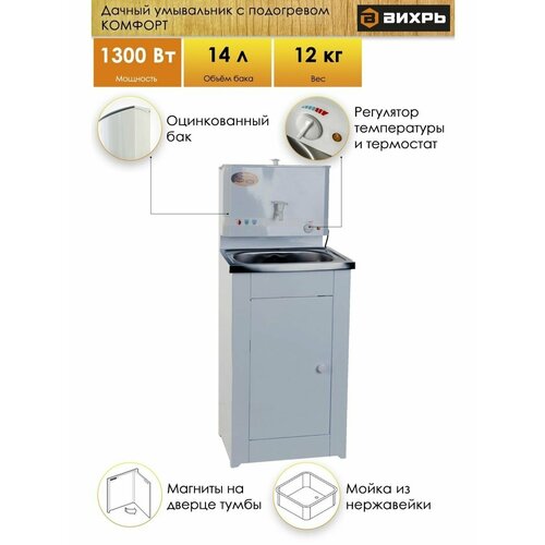 Умывальник ВИХРЬ Комфорт с подогревом, нержавеющая мойка, 14 л, белый