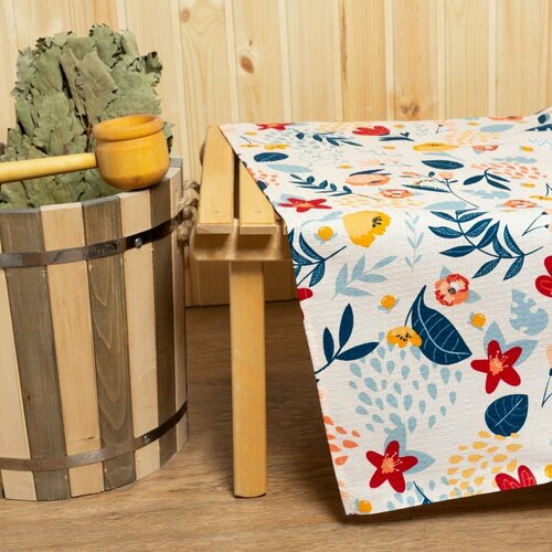 Простыня для бани Цветочное поле 150х180 см, вафельное полотно