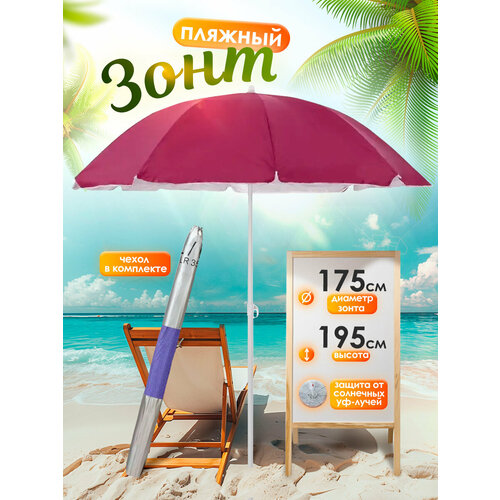 Зонт пляжный большой складной, садовый от солнца для отдыха 1,75 м в чехле, (бордовый) 35LR