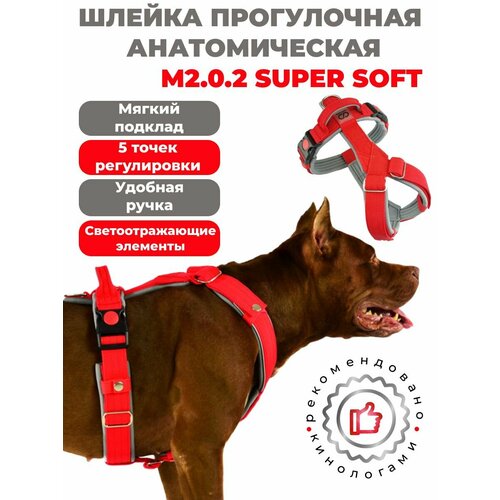 Шлейка с ручкой и мягким подкладом для собак прогулочная анатомическая, CORADOG M 2.0.2. , размер R5, цвет красный, серый