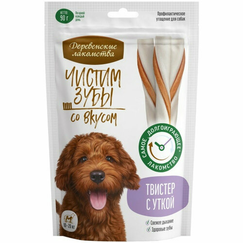 Лакомство для собак Деревенские Лакомства Чистим зубы Твистер с уткой, 90г Деревенские лакомства