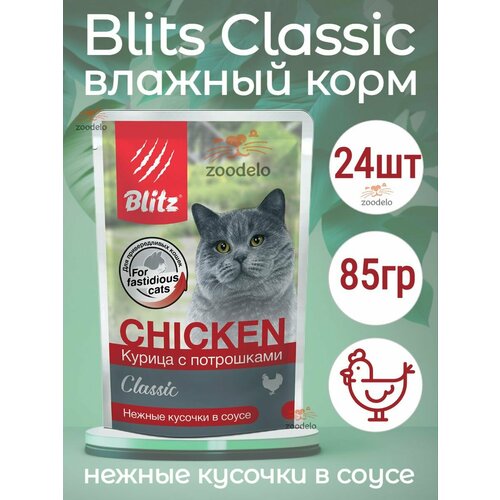 Blitz Classic влажный корм для взрослых кошек Курица с потрошками нежные кусочки в соусе 85 гр (24 шт/уп)