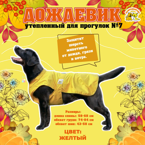 Дождевик для собак Доброзверики, №7, утепленный, желтый (длина спины 58-68 см) Пелигрин