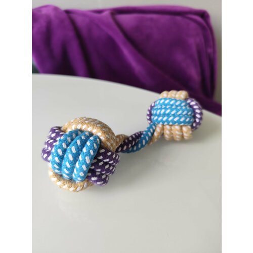 Игрушка для собак и кошек "Гантель", канатная, мультицветная, 20см