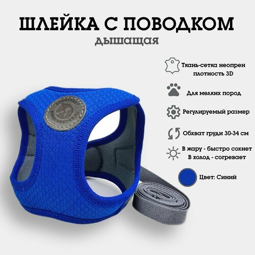 Шлейка жилетка, сетка трехслойная, регулируемая, с поводком, для собак мелких пород и кошек ZOOSTREET