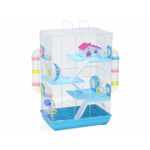 Клетка 3х-этажная, 55*30,2*70 см для хомяков, крыс, мышей, мелких грызунов, укомплектованная прямоугольная голубая, N1