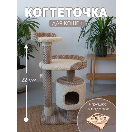 Игровой комплекс "Карлито", трехуровневый, с домиком и лежанкой, (мех, джут, поролон), 70*36*66 (h) см, цвет: Syndicate