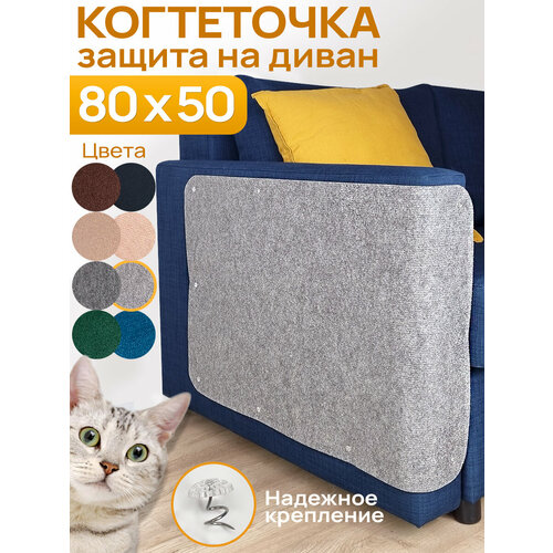 Когтеточка для кошек, 80x50 см, на мебель, с креплением, светло-серая