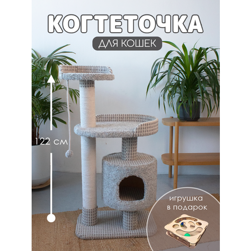 Когтеточка-комплекс для кошки хлопковая с домиком Милан, цвет серый