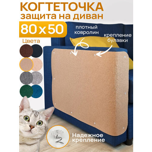 Когтеточка для кошки на мебель 80х50см с креплением на фиксаторы, бежевая