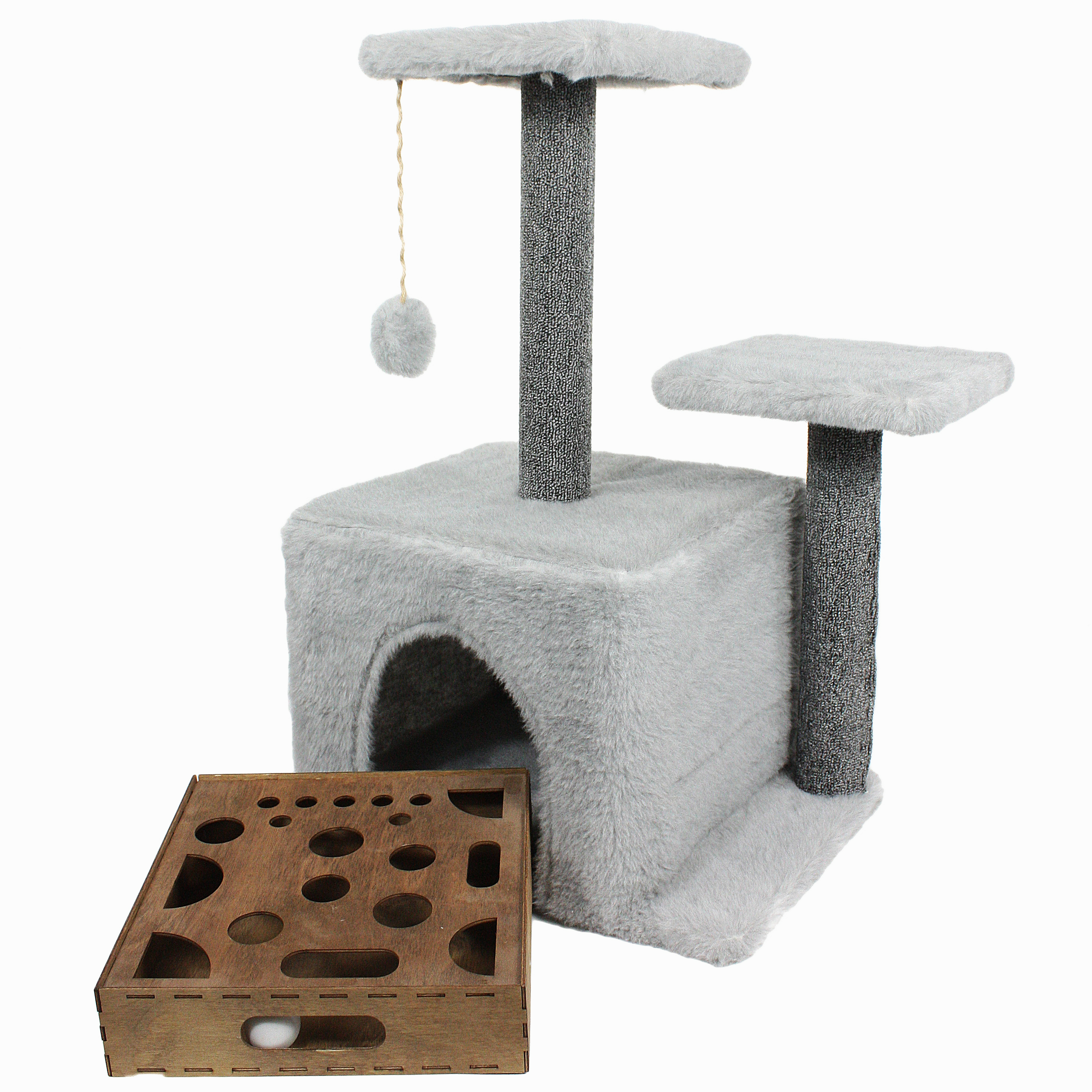 Комплекс для кошек Меридиан игровой, ковролин, искусственный мех, 52х33х80 см НТ535