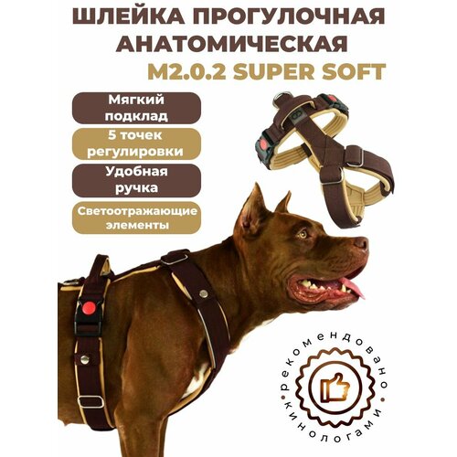 Шлейка с ручкой и мягким подкладом для больших собак прогулочная анатомическая, CORADOG M 2.0.2. , размер R7, бежевый