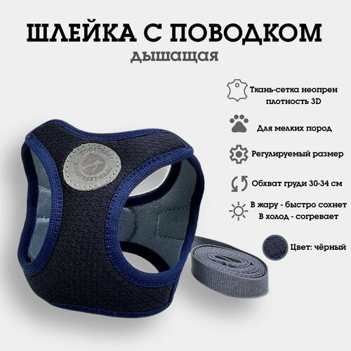 Шлейка жилетка, сетка трехслойная, регулируемая, с поводком, для собак мелких пород и кошек ZOOSTREET