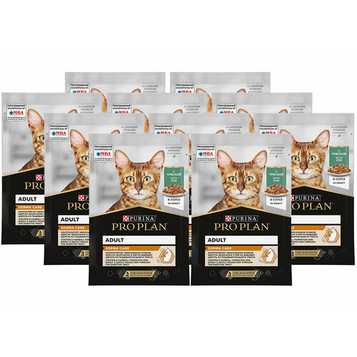PRO PLAN DERMA CARE для взрослых кошек для здоровья кожи и шерсти с треской в соусе пауч 85 гр пауч 85 гр х 10 шт Pro Plan