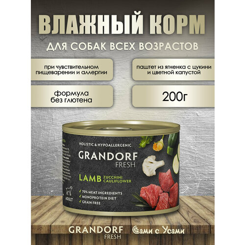 GRANDORF FRESH Adult Lamb Корм влаж. паштет из ягненка с цукини и цветной капустой д/собак конс.200г Grandorf