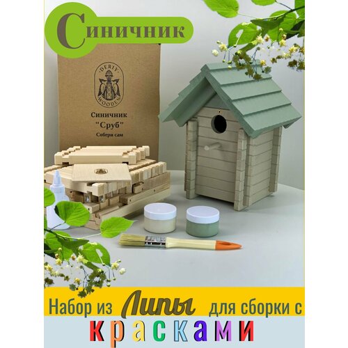 Синичник "Сруб", набор из липы для самостоятельной сборки. DERIYWOODEN