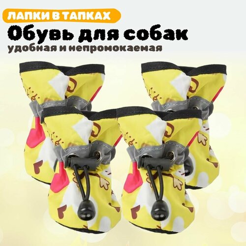 Обувь для собак. Желтые ботинки для собак и щенков мелких и средних пород, размер L, 4 шт.