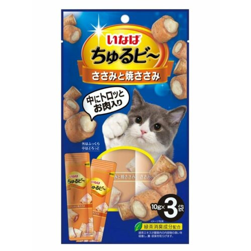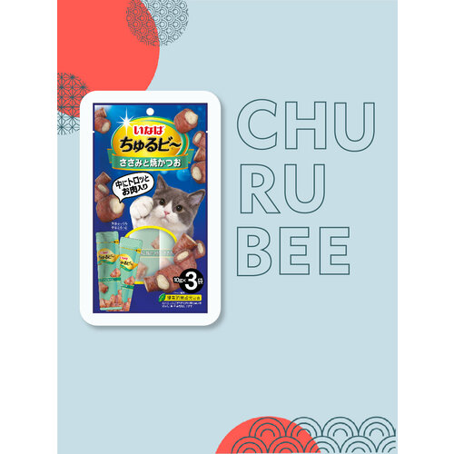 "Inaba Churu Bee" с куриным филе и тунцом Кацуо запеченное лакомство-трубочки для кошек
