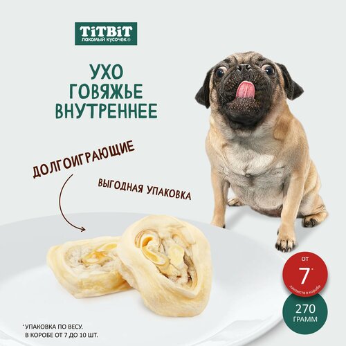 Лакомство для собак Titbit Ухо говяжье внутреннее, 270 г (шоу бокс)