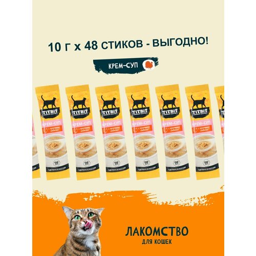 Комплект лакомств TiTBiT для кошек Крем-суп 10г х 48 шт с кусочками индейки Titbit