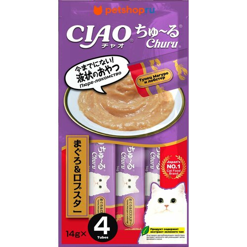Inaba Лакомство-пюре CIAO Churu пюре для кошек Тунец Магуро и лобстер 14г * 4шт * 6шт