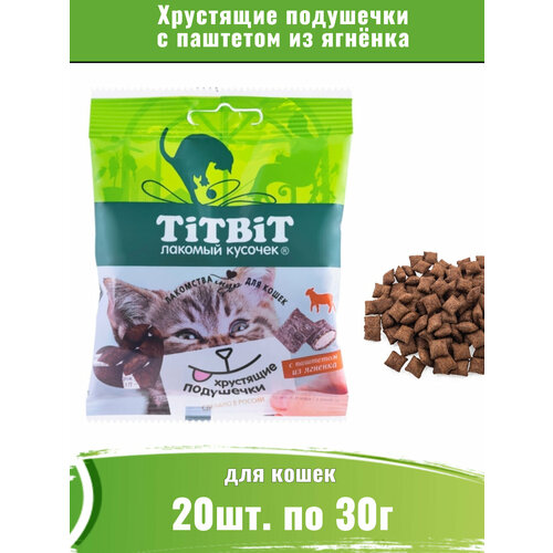 TiTBiT 20шт х 30г хрустящие подушечки для кошек с паштетом из ягненка Titbit