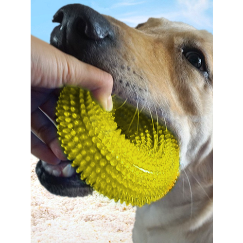 Игрушка для собак мелких и средних пород, кольцо- кристалл для грызения, чистки зубов, пищащая, желтая Petsy