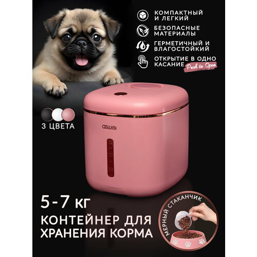 Контейнер для хранения корма животных с автоматической крышкой, ящик органайзер для корма кошек, собак, емкость до 7 кг, мерный стаканчик ShopStor